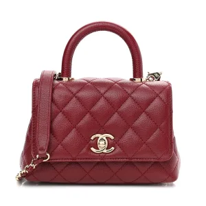 Chanel Caviar Quilted Extra Mini Coco Handle Flap Bag-Burgundy