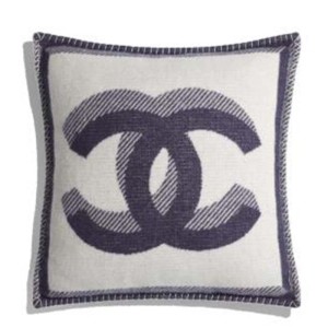 Chanel Unisex CC Cushion Cotton Wool Tweed Beige Navy Multifunction