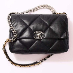 - Product Name: Chanel Women 19 Large Handbag Lambskin Gold Silver-Tone Ruthenium-Finish Metal Black