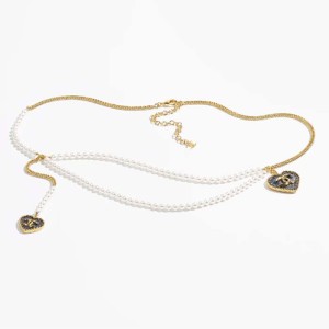 Home>Accessories>Belt>Jewelry>Women>Chanel Women CC Chain Belt Metal Glass Pearls Gold Blue Pearly White