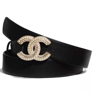- Product Name: Chanel Women Calfskin & Gold Metal & Strass & Pearls Belt-Black