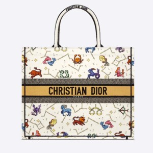 - Product Name: Dior Unisex CD Large Book Tote Latte Multicolor Dior Pixel Zodiac Embroidery