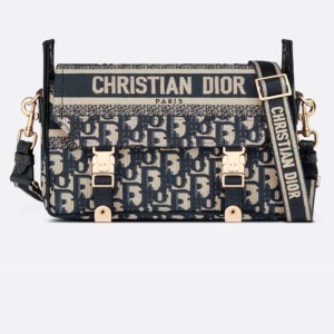 - Fully embroidered with the blue Dior Oblique motif, the bag is enhanced by a Christian Dior Paris signature flap, as well as sportswear-inspired CD buckles.