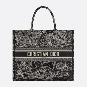 - Product Name: Dior Women Book Tote Black and White Dior Around the World Embroidery