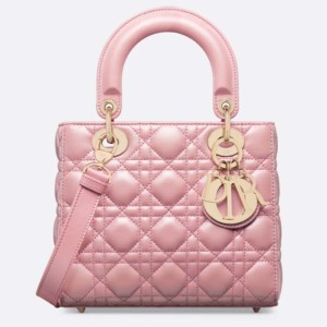 - The Lady Dior bag embodies Dior’s vision of elegance and beauty. Sleek and refined, the timeless yet modern style is crafted in melocoton pink pearlescent lambskin with Cannage stitching, its quilted texture is instantly recognizable.