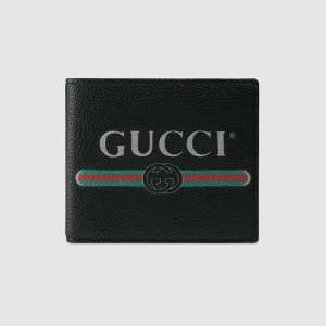 - Product Name: Gucci GG Men Gucci Print Leather Bi-Fold Wallet in Black Leather
