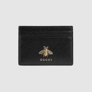 - Part of the Animalier collection, the leather card case features the distinctive metal bee detail. The bee is an archival code first introduced in Gucci ready-to-wear in the 1970s.