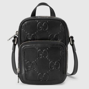 - Product Name: Gucci GG Unisex Embossed Mini Bag Black Leather Cotton Linen