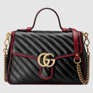 - Product Name: Gucci GG Women GG Marmont Small Top Handle Bag in Black Diagonal Matelassé Leather