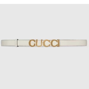 - Product Name: Gucci Unisex Buckle Thin Belt White Leather Gold-Toned Hardware 2 CM Width