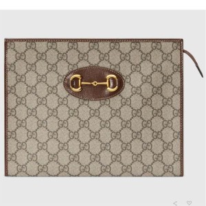 - Product Name: Gucci Unisex GG Horsebit 1955 Pouch Brown Beige Ebony GG Supreme Canvas