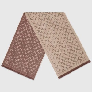 - Refined with fringe edges, this double jacquard wool scarf features the House’s trademark GG pattern, first introduced in the ’70s.