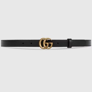 Gucci Unisex GG Leather Belt Double G Buckle Black Leather 2 CM Width