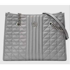 - Product Name: Gucci Unisex GG Marmont Medium Tote Bag Grey Matelassé Leather Double G