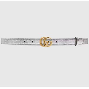 - Product Name: Gucci Unisex GG Marmont Thin Belt Silver Lamé Leather Double G Buckle 2 CM Width