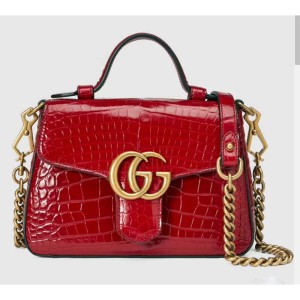 - One of the House’s Beloved lines, the GG Marmont continues to evolve with each season. Presented in glossy red crocodile, the mini top handle bag has a softly structured shape and a flap closure with Double G hardware.