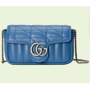 - Product Name: Gucci Women GG Marmont Super Mini Bag Blue Matelassé Leather Double G