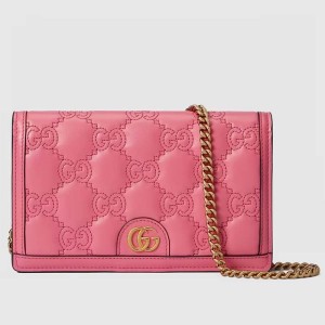 - Product Name: Gucci Women GG Matelassé Chain Wallet Pink Leather Double G Chain Strap