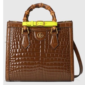 - Product Name: Gucci Women Gucci Diana Small Crocodile Tote Bag Double G Brown Crocodile