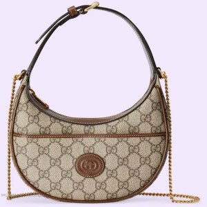 - Product Name: Gucci Women Half-Moon-Shaped Mini Bag Interlocking G Beige Ebony GG Supreme Canvas
