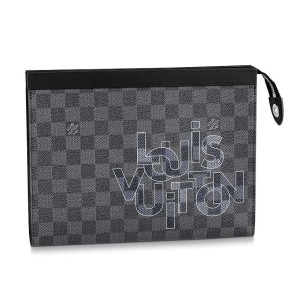 - The versatile Pochette Voyage MM in Damier Graphite canvas can be hand-carried as a small portfolio or used as a pouch inside a larger bag.