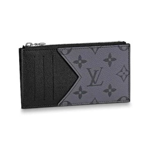 - Fashioned from dark Monogram Eclipse coated canvas and lighter Monogram Eclipse Reverse, the slim-line Coin Card Holder looks neat and masculine.