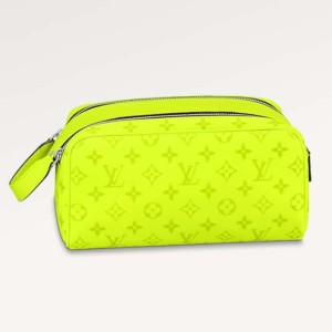 - Product Name: Louis Vuitton LV Unisex Dopp Kit Neon Yellow Monogram Coated Canvas Taiga Cowhide Leather