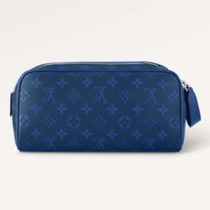 - Product Name: Louis Vuitton LV Unisex Dopp Kit Toilet Pouch Blue Taiga Cowhide Leather Monogram Coated Canvas