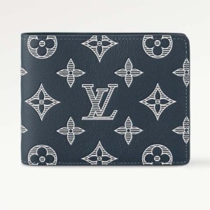 Louis Vuitton LV Unisex Multiple Wallet Blue White Monogram Shadow Calfskin Leather M83379