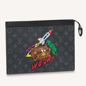 - The Pochette Voyage takes off on a new adventure in Monogram Eclipse canvas highlighted with a playful print: a colorful little trunk that brings Louis Vuitton’s travel heritage into the Space Age. Great for carrying personal items like phones, cards and papers, it makes a fun and practical gift.