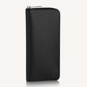 Louis Vuitton LV Unisex Zippy Wallet Vertical Taiga Black Cowhide Leather