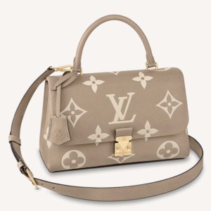 - The Madeleine MM handbag is made from bicolor Monogram Empreinte leather with a large Monogram pattern embossed and printed into the cowhide.