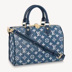 - Product Name: Louis Vuitton LV Women Speedy Bandoulière 25 Handbag Navy Blue Denim Jacquard Calfskin