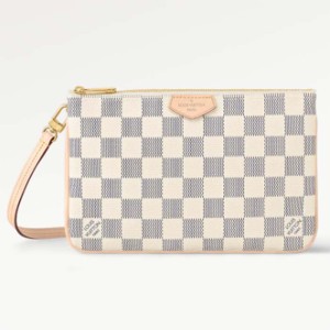 - Product Name: Louis Vuitton Unisex LV Double Zip Pochette Damier Azur Coated Canvas Cowhide Leather