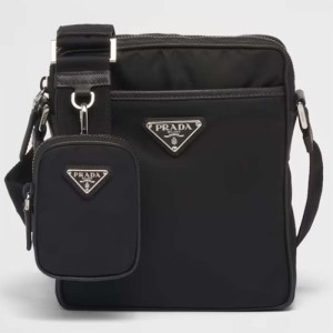 - This Re-Nylon shoulder bag is defined by a modern, functional design, removable pouch and spacious inside compartments.